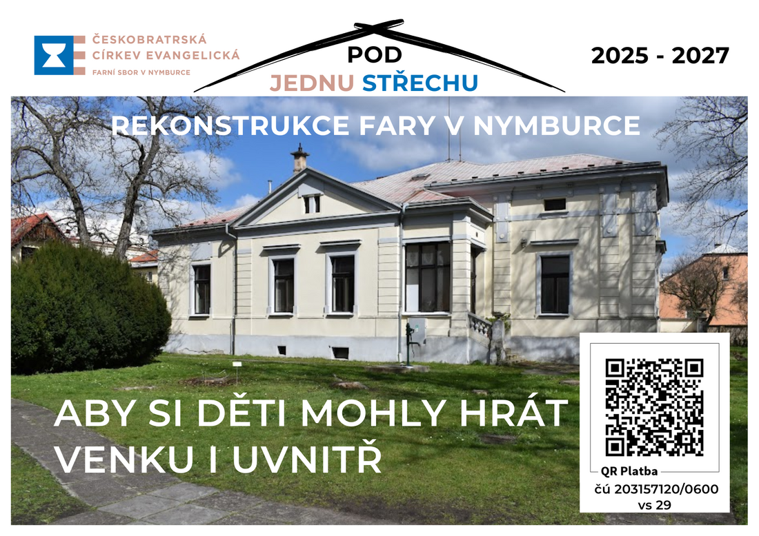 Podpořte místo, kde se historie sboru potkává s jeho budoucností; budeme vděčni za každý váš dar. Více o tom, jak nám pomoci „dočepovat“ prostředky na opravu, najdete zde: Rekonstrukce fary v Nymburce.